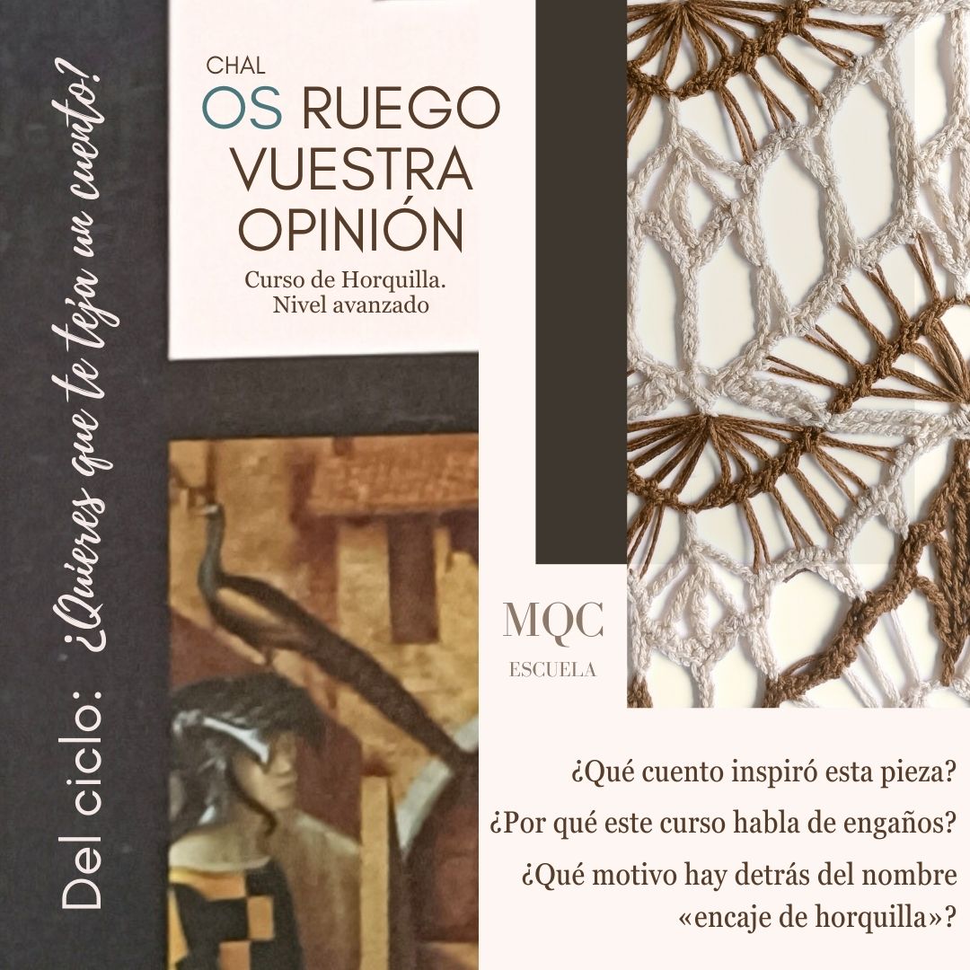 En este curso nada es lo que parece. Trabajaremos en el chal Os ruego vuestra opinión, una pieza que destaca por su caída elegante y la sofisticación de sus uniones. Este no es solo un curso; es una serie de clases magistrales sobre cómo elevar la técnica de la horquilla a la categoría de prenda de diseño.